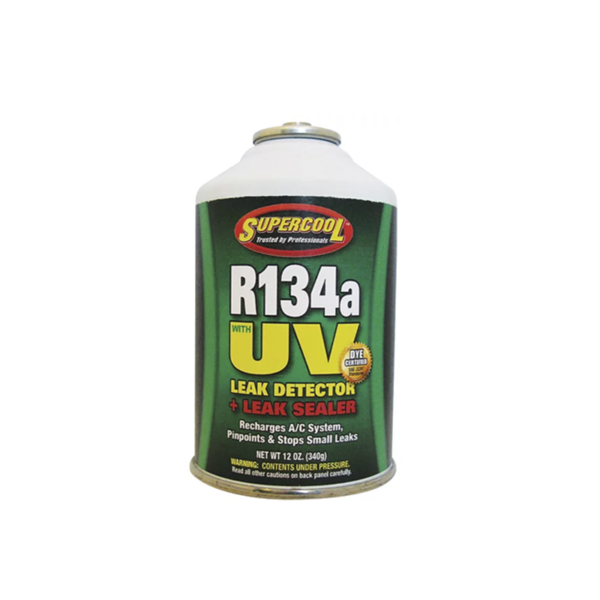 Gas Refrigerante R-134A con Detector y Sellador de fuga 340GR. – Supercool