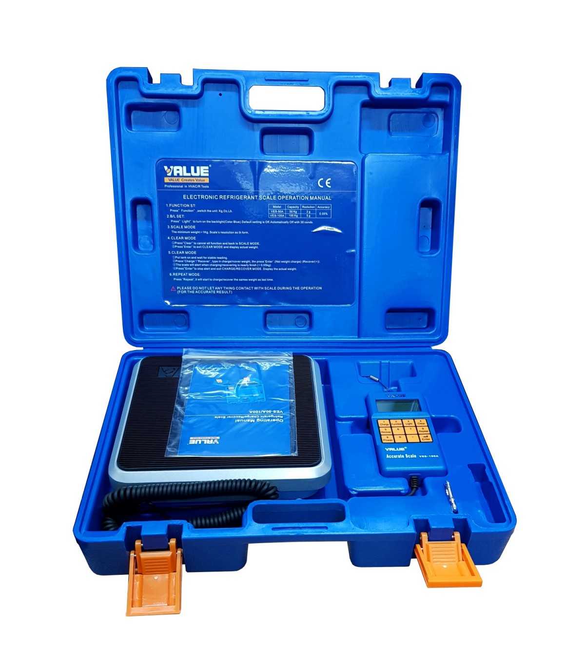 La balanza digital para carga de gas refrigerante VES-100B es una herramienta esencial para técnicos de refrigeración y aire acondicionado, diseñada para medir con precisión la cantidad de refrigerante durante los procesos de carga y recuperación. Su plataforma resistente y su pantalla digital de alta precisión permiten controlar el peso del gas de forma rápida y segura, evitando sobrecargas en el sistema.
